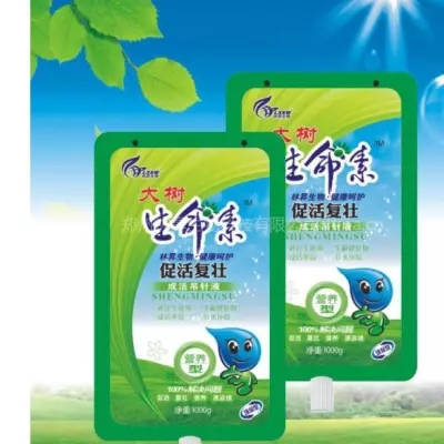 本品是根據(jù)園林樹(shù)木的生長(zhǎng)特性和需肥特點(diǎn),精選優(yōu)質(zhì)原料,采用世界先進(jìn)的技術(shù)配方研制而成的新一代適用于大樹(shù)移栽和古樹(shù)復(fù)壯的營(yíng)養(yǎng)吊針液;富含多種氨基酸、維生素、螯合各種微量元素,復(fù)配植物生命活性物質(zhì),被樹(shù)體吸收后能夠全面補(bǔ)充樹(shù)木生長(zhǎng)所需的營(yíng)養(yǎng)成分,迅速恢復(fù)樹(shù)勢(shì),對(duì)提高樹(shù)木移栽成活率和大樹(shù)古樹(shù)復(fù)壯有神奇的效果。