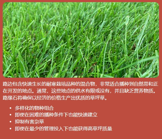 冷地型混播果嶺草Coolseasen Blend Golf turf seeds是由高羊茅.匍匐紫羊茅,多年生坪用黑麥草和草地早熟禾按照一定比例混播而成?;觳ゲ萜簝?yōu)點:充分挖掘各品種的生態(tài)適應性,達到優(yōu)勢互補的效果,顏色濃綠,抗病性好。根系發(fā)達,耐踐踏,恢復能力快,抗逆性強,耐粗放管理等特點。